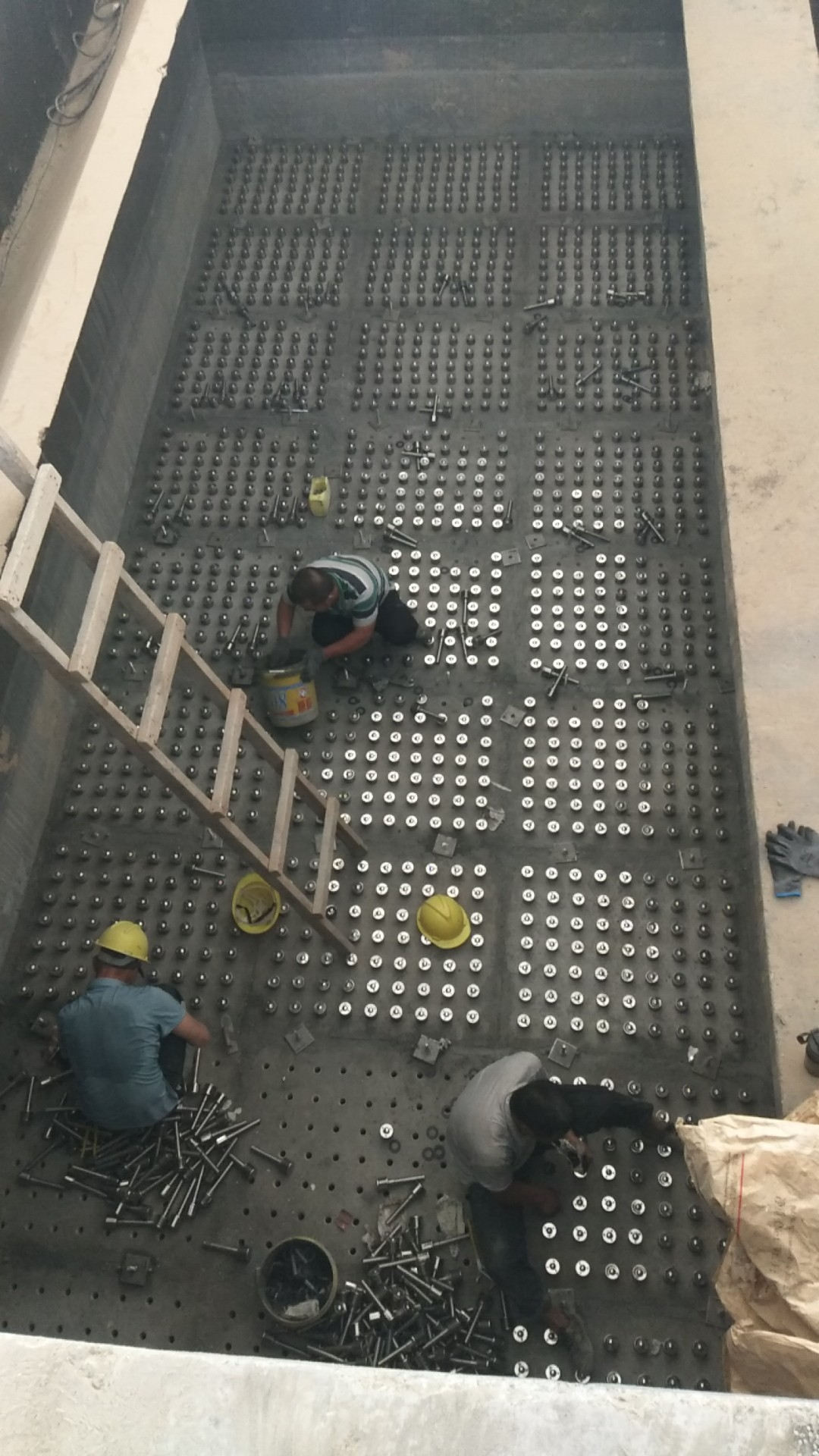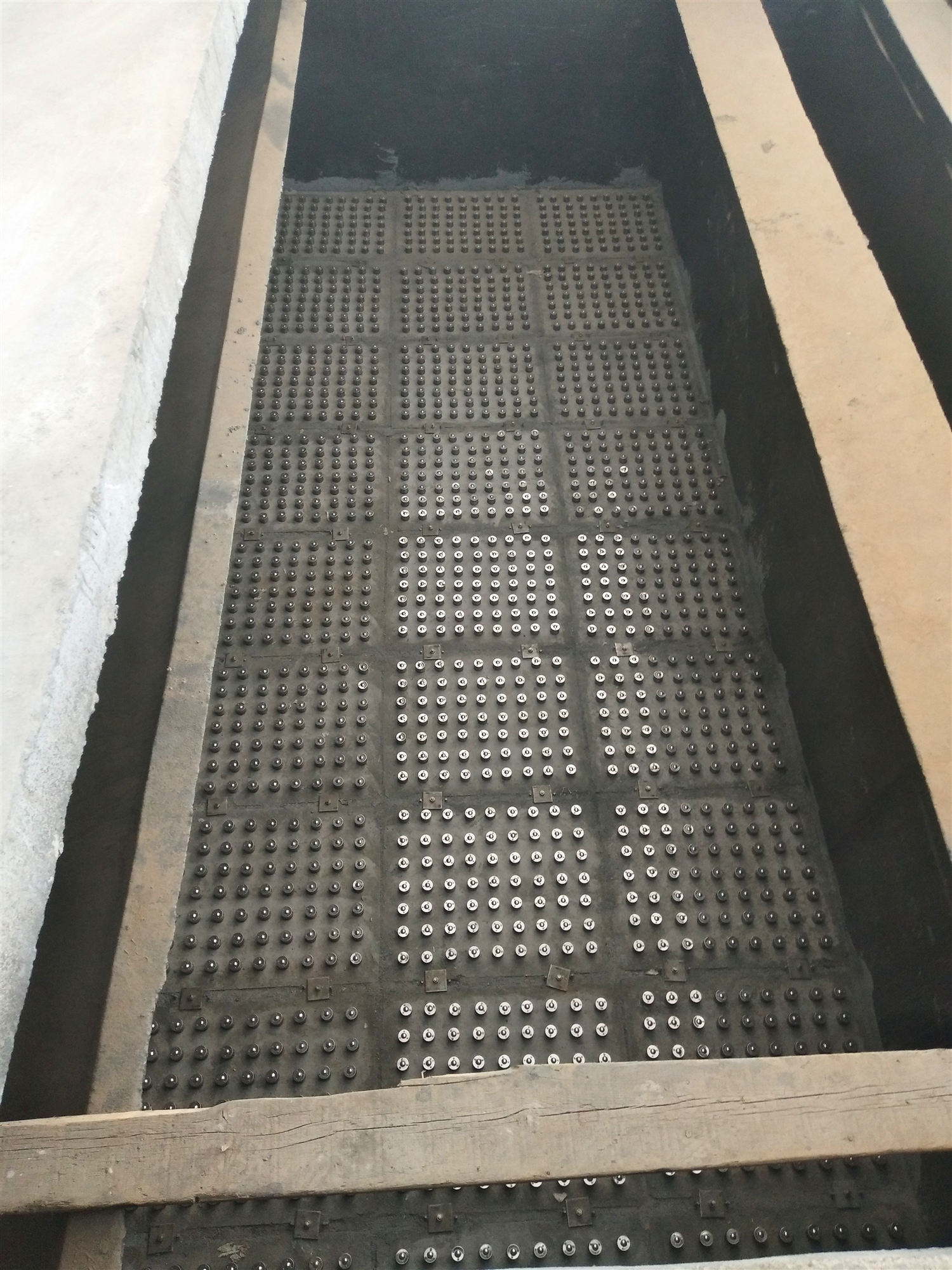 濾板水平安裝精度要求較高,其重要基礎是涉及濾梁的整池平整及預埋鉚固濾板用的不銹鋼件定位準確性,因此,濾梁找平要求水平線,必須要有配置高標準的金屬模具和熟練的制造技術,才能確保濾梁的平整度,平面找平后,再安裝濾板。