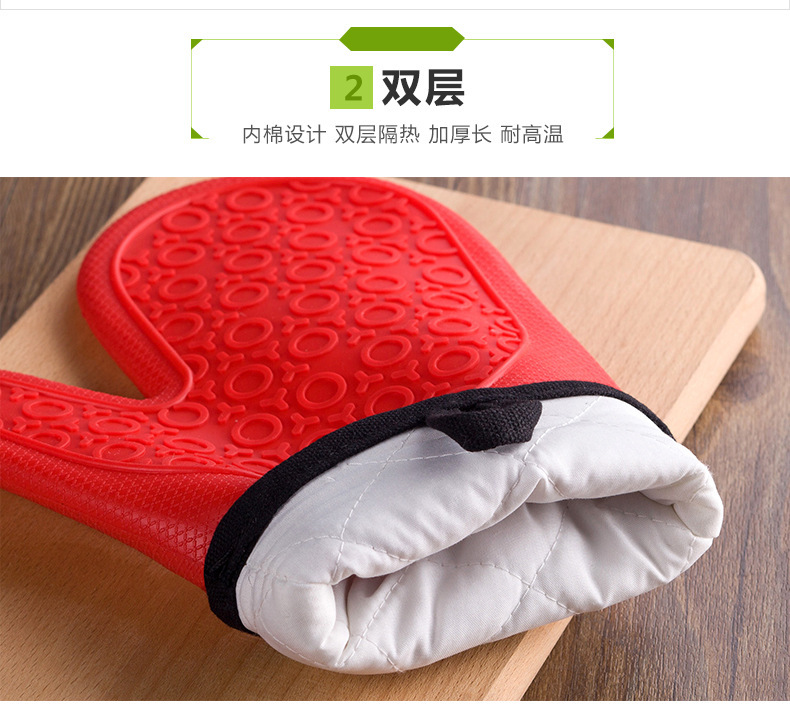 包裝:單只裝開口PP袋新款加長加厚雙層防燙硅膠手套,采用棉布加硅膠雙層防燙設(shè)計,棉布部分可以加印logo,雙層設(shè)計更加耐熱,該手套具有清洗方便、多重防滑、雙層耐熱、防水耐用等優(yōu)勢。