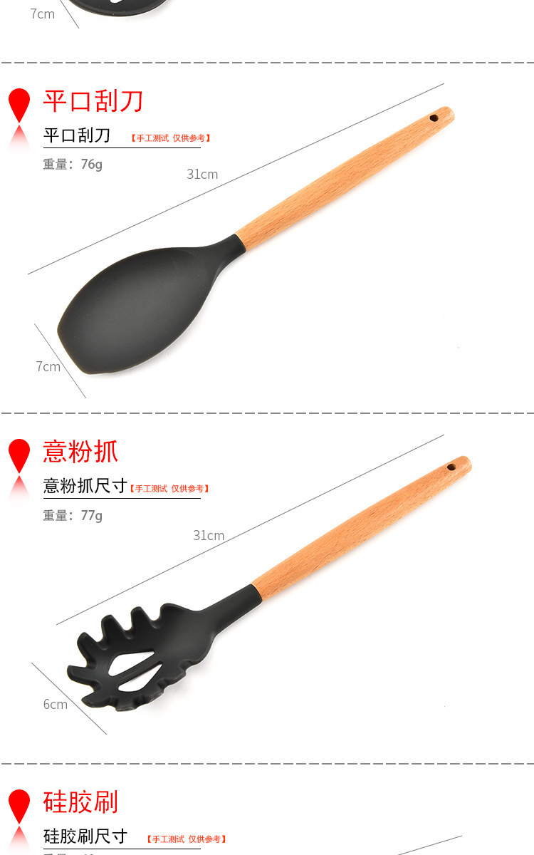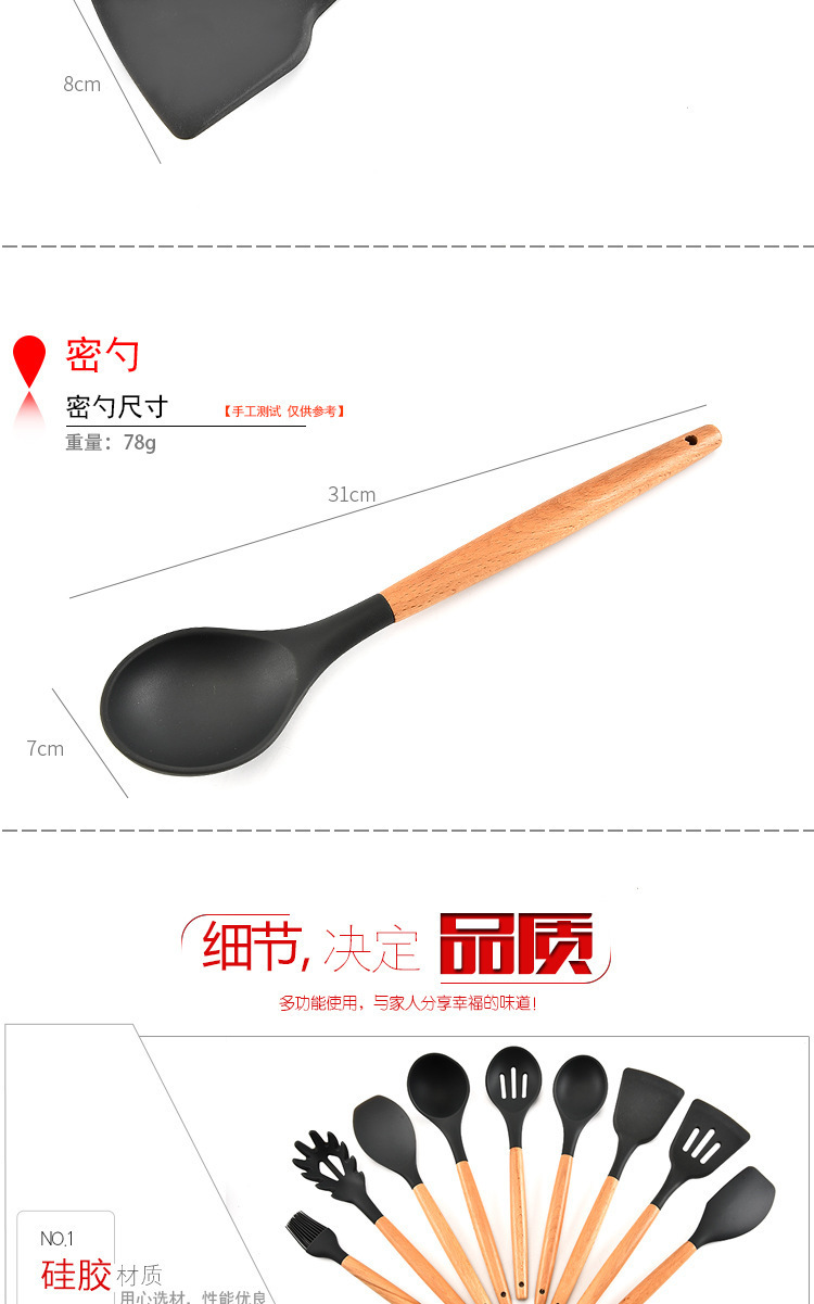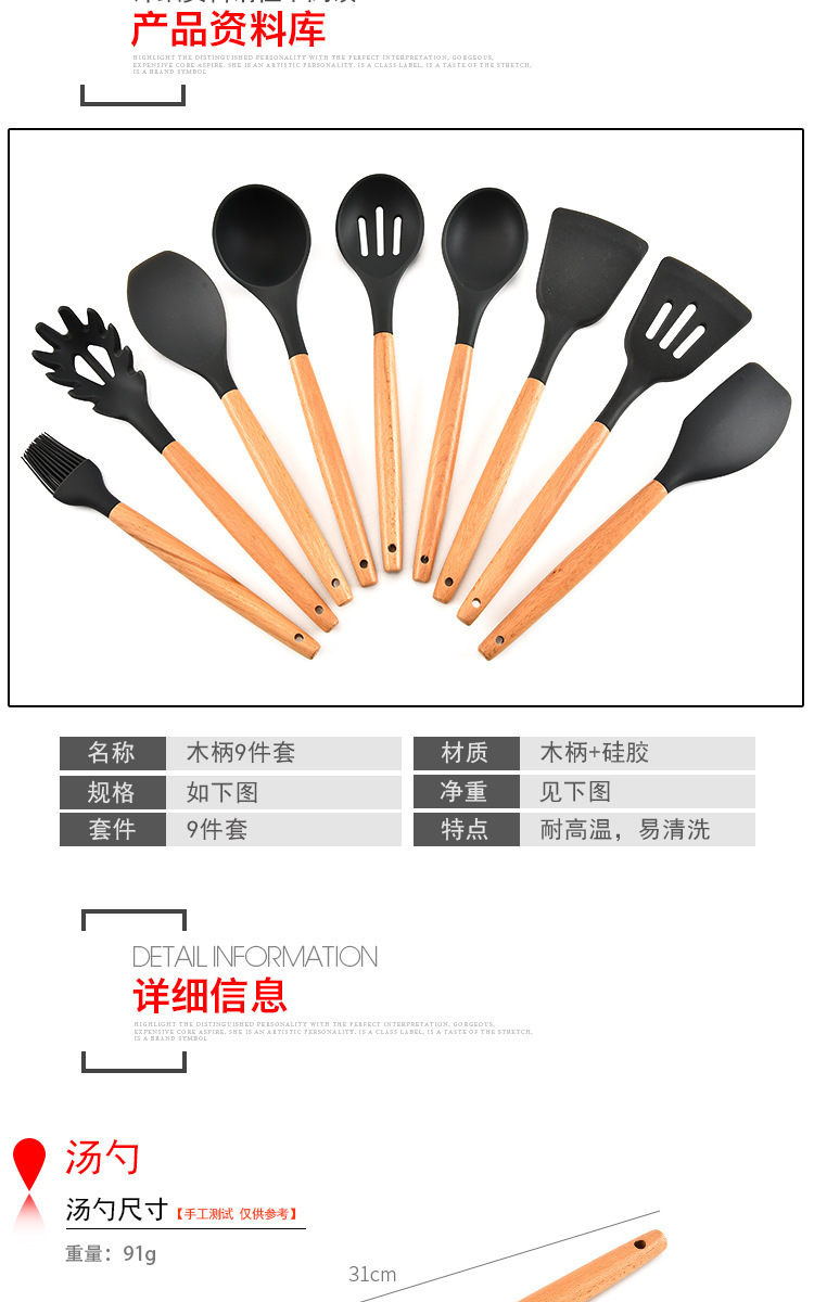 - 名稱(chēng):木柄9件套硅膠廚具,硅膠廚具九件套木柄