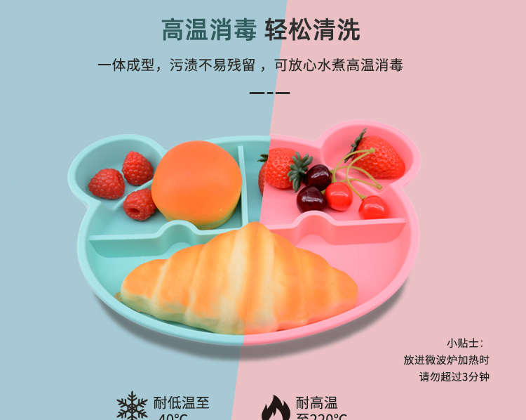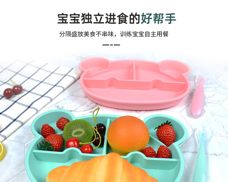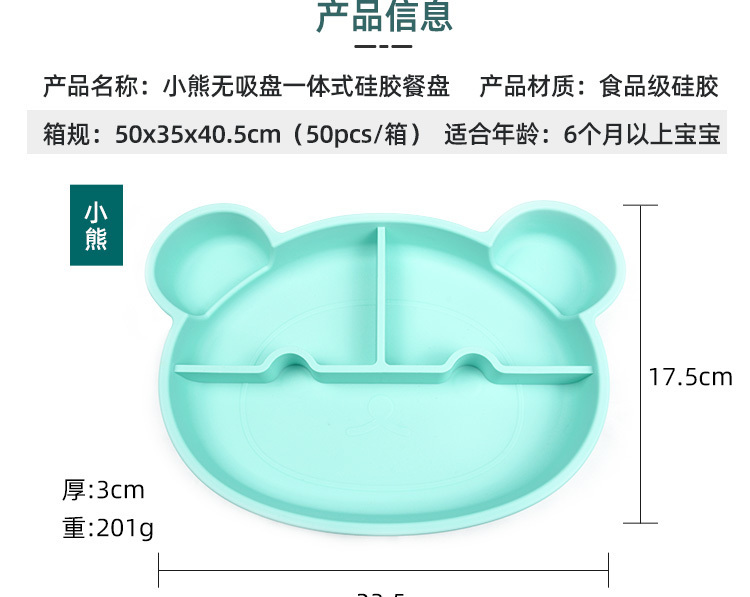 產品名稱:小熊硅膠餐盤 一體式兒童可愛卡通餐墊盤 分格輔食環保無氣味防摔